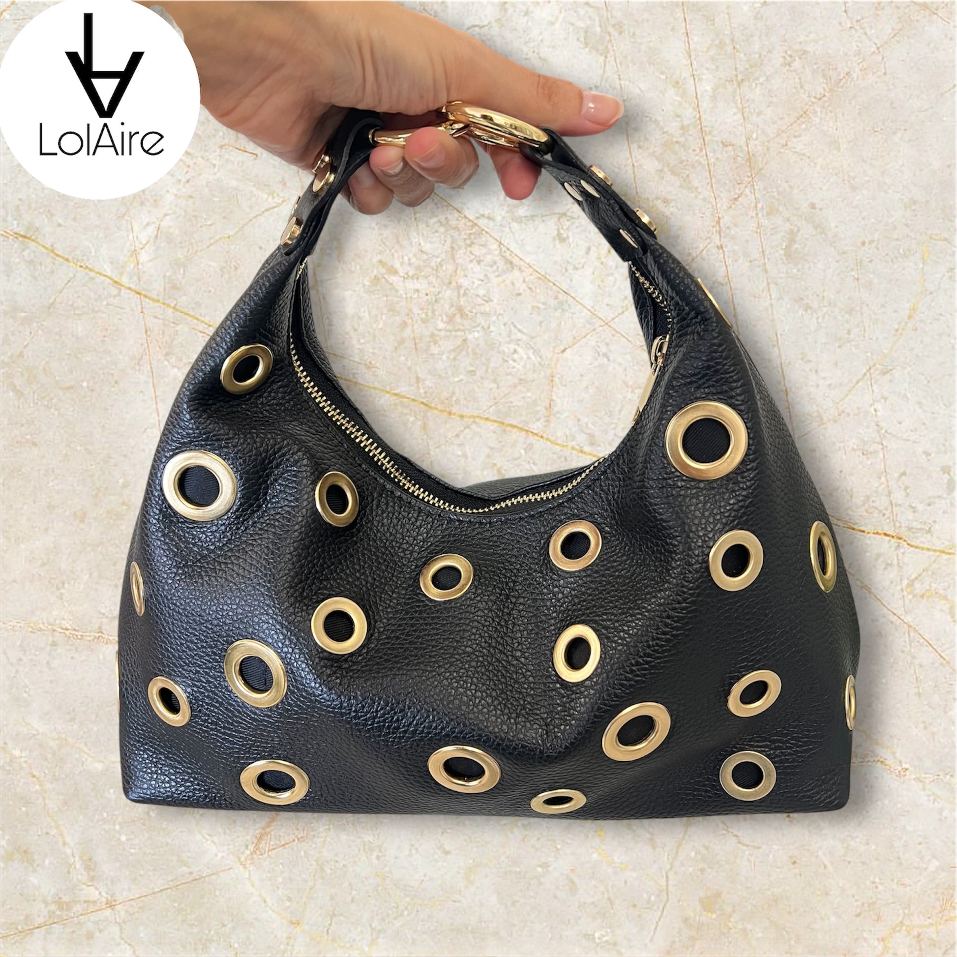 Con tachas en doradas, una de las tendencias más top de la temporada.